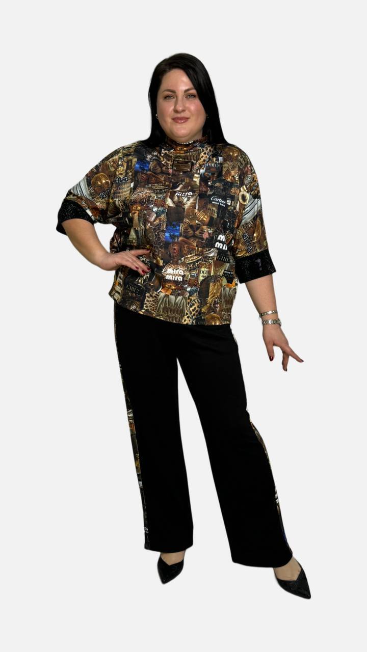 Свитшот на молнии, рукав 3/4. Брюки прямого кроя , на резинке.